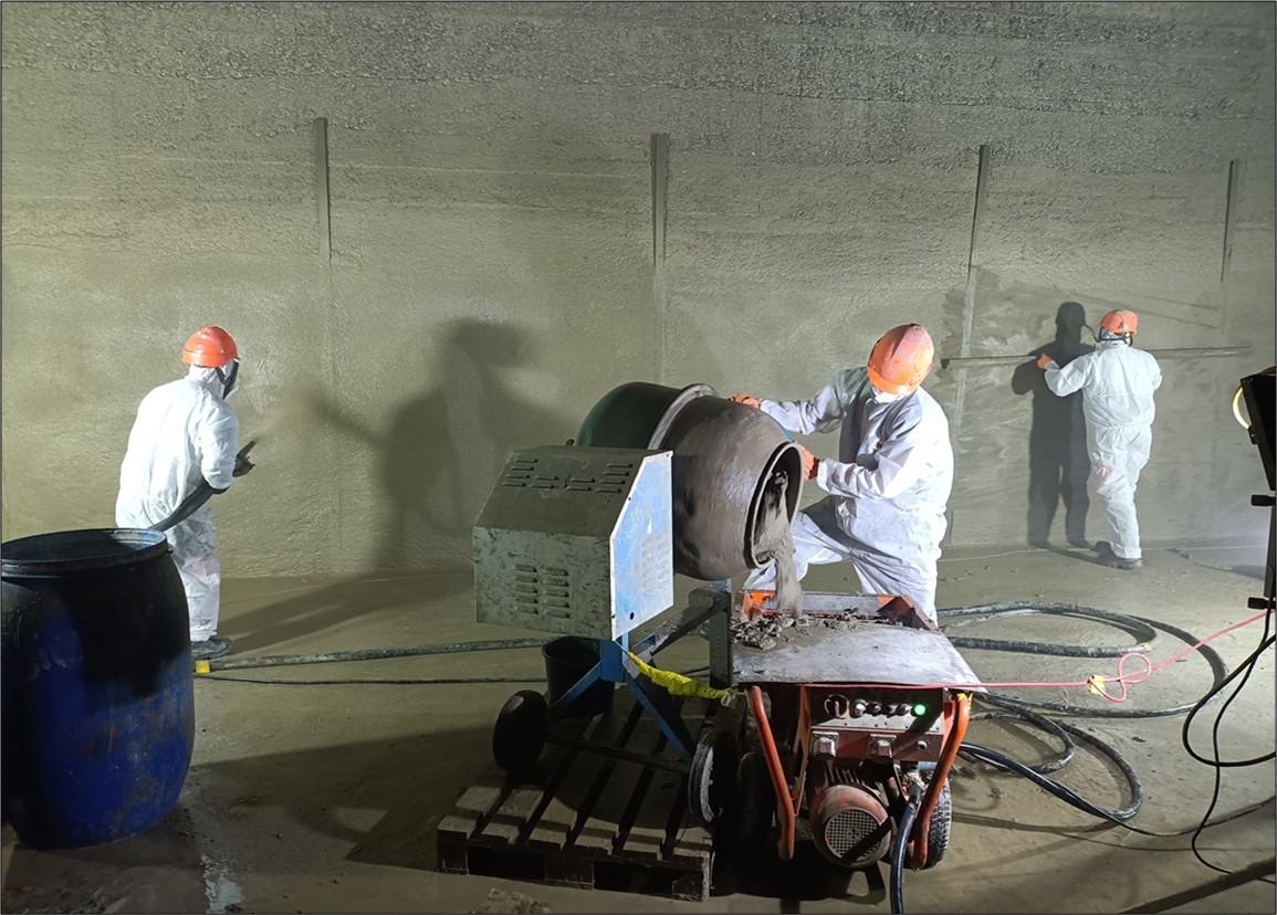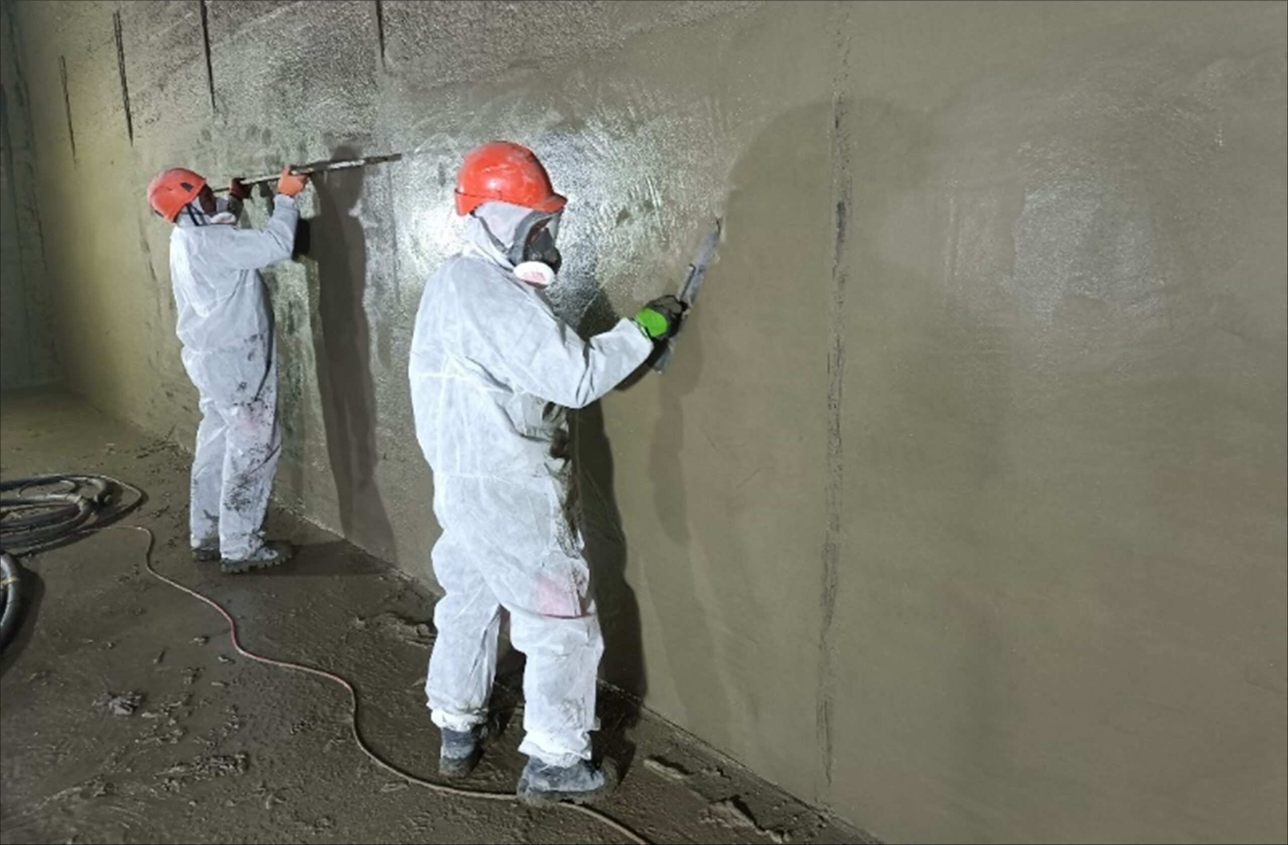 - Application d’un revêtement d’étanchéité minéral Vandex en deux couches sur une épaisseur moyenne de 25 mm – 3’800 m2