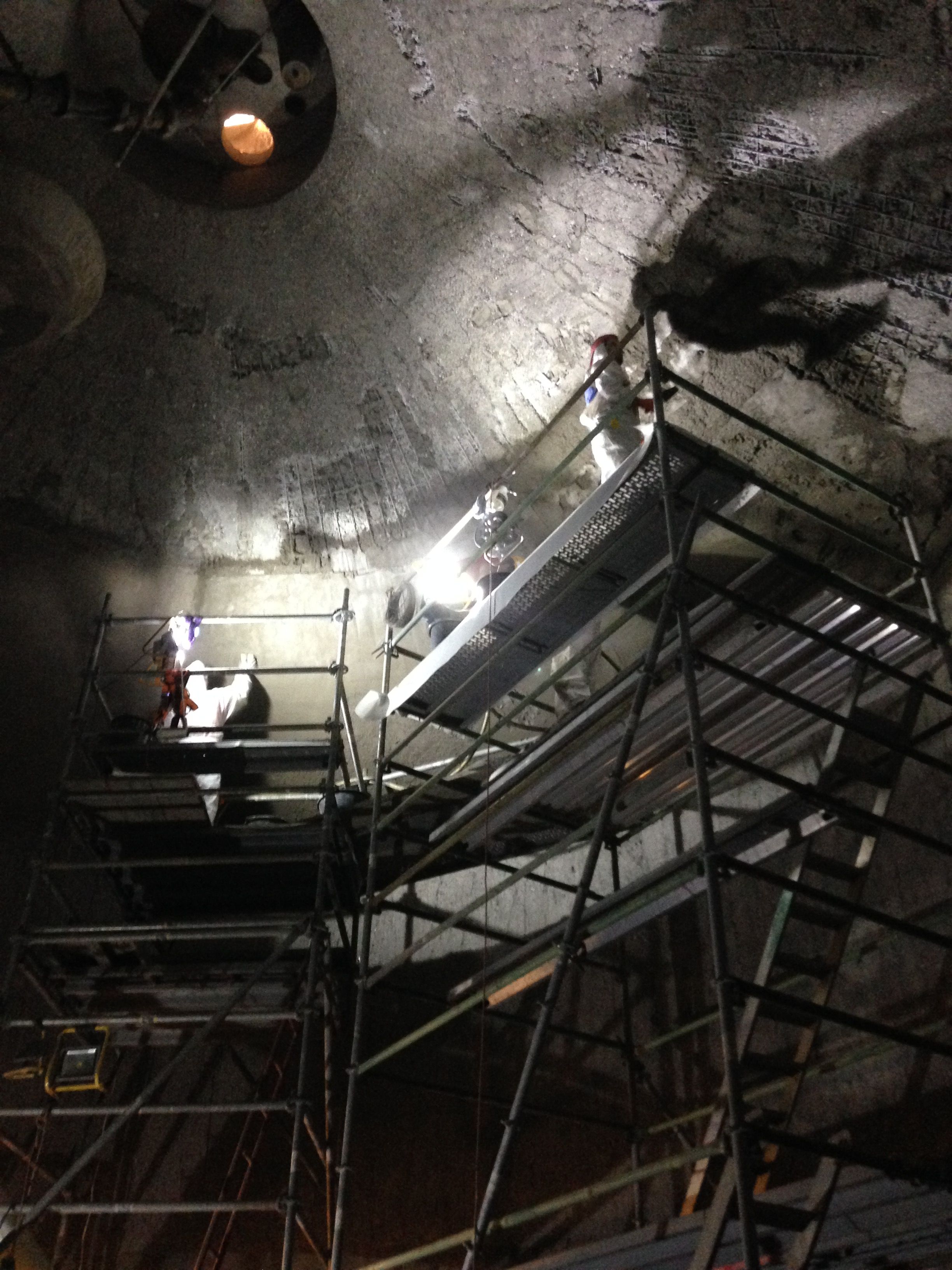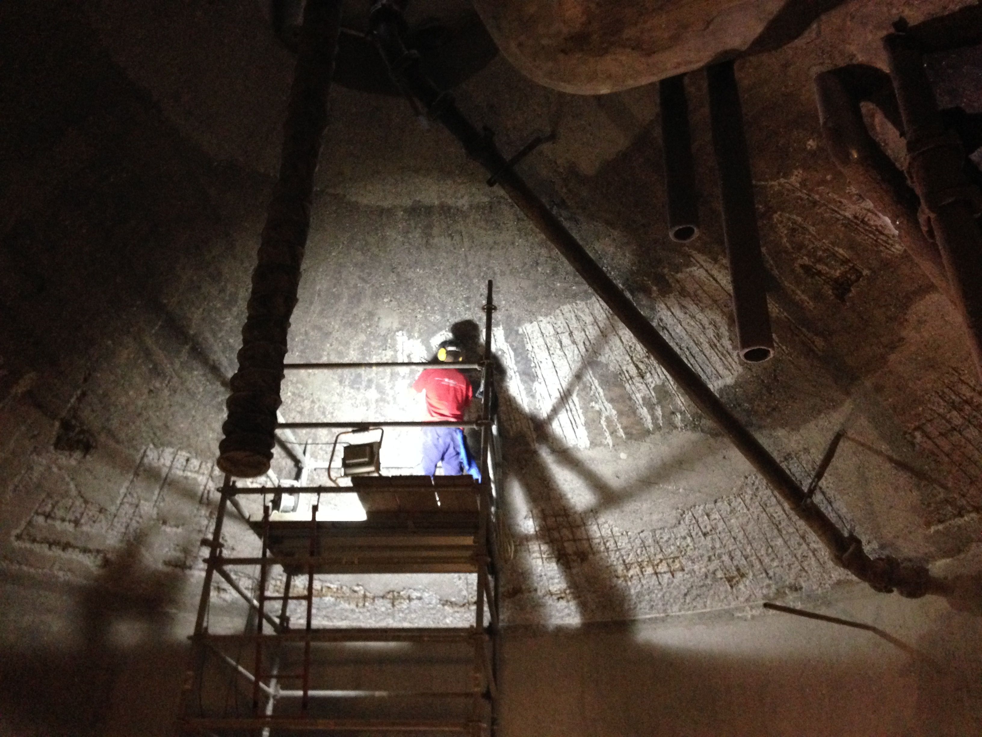 – Mise en œuvre par projection d’un revêtement Polyuréa résistant aux agressions chimiques.